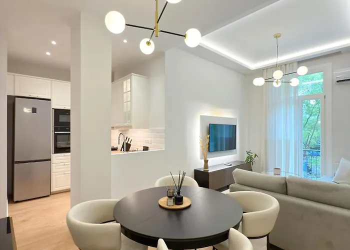 Situated just 12 minutes' stroll from the Church of Agia Sofia, the 59 m² Luxury Downtown Apartment A1 Thessaloniki also boasts easy access to Thessaloniki Central train station which is 2.1 km away. The apartment offers a view of the city, and there is a terrace.